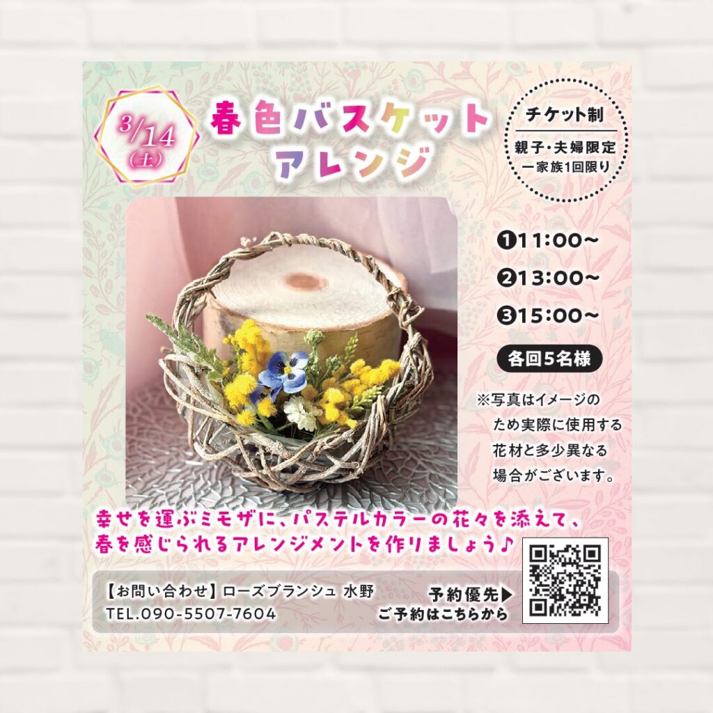 【2026年3月14日(土)】春色バスケットアレンジ