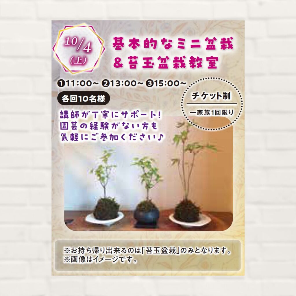 【2025年10月4日(土)】基本的なミニ盆栽&苔玉盆栽教室